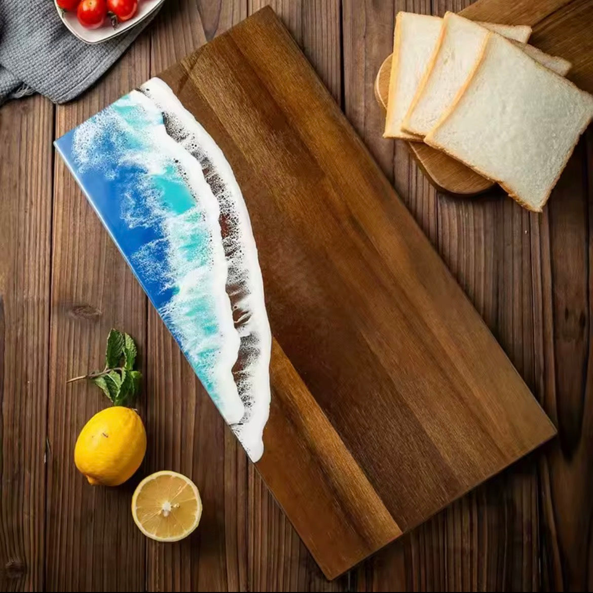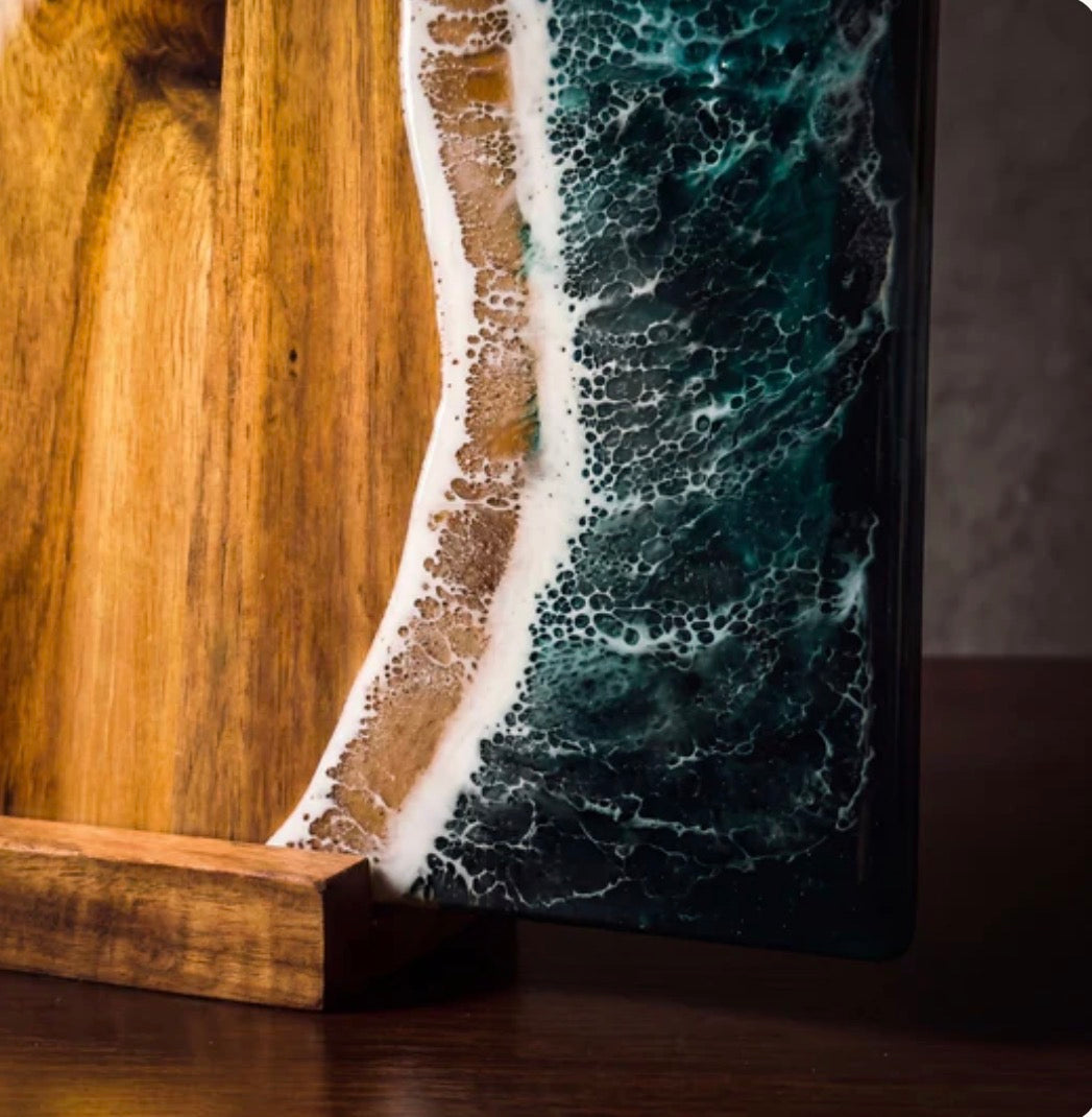 Marea Profonda™ unisce legno naturale e resina effetto oceano per creare un pezzo unico, raffinato e impossibile da ignorare.